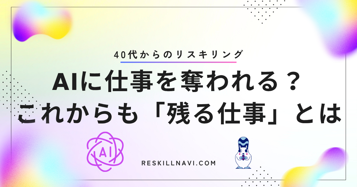 参考:AIに仕事を奪われる?これからも「残る仕事」と40代からのリスキリング