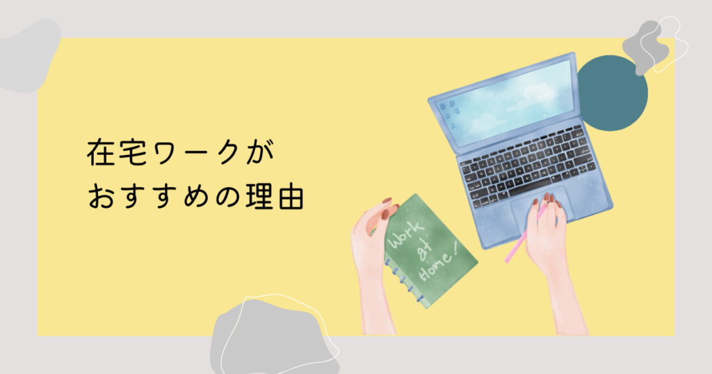なぜなら、在宅ワークは1日または1週間の仕事量の調節が自分でできるといったメリットがあるからですね。
